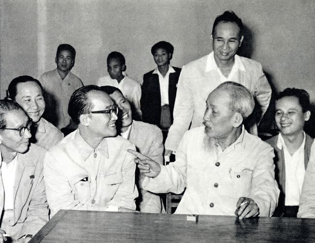 Президент Хо Ши Мин беседует с делегатами-интеллектуалами на Особой политической конференции (март 1964 года).