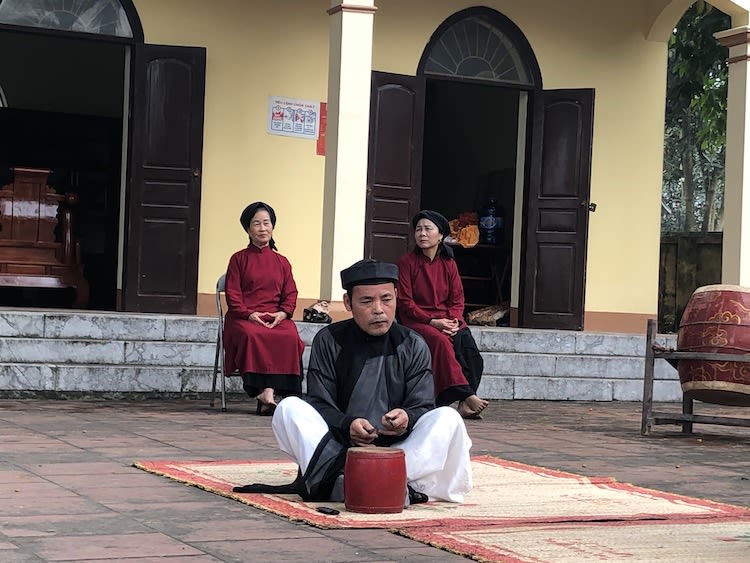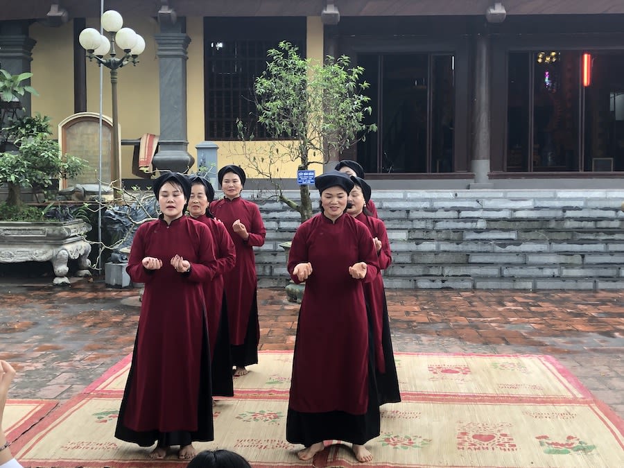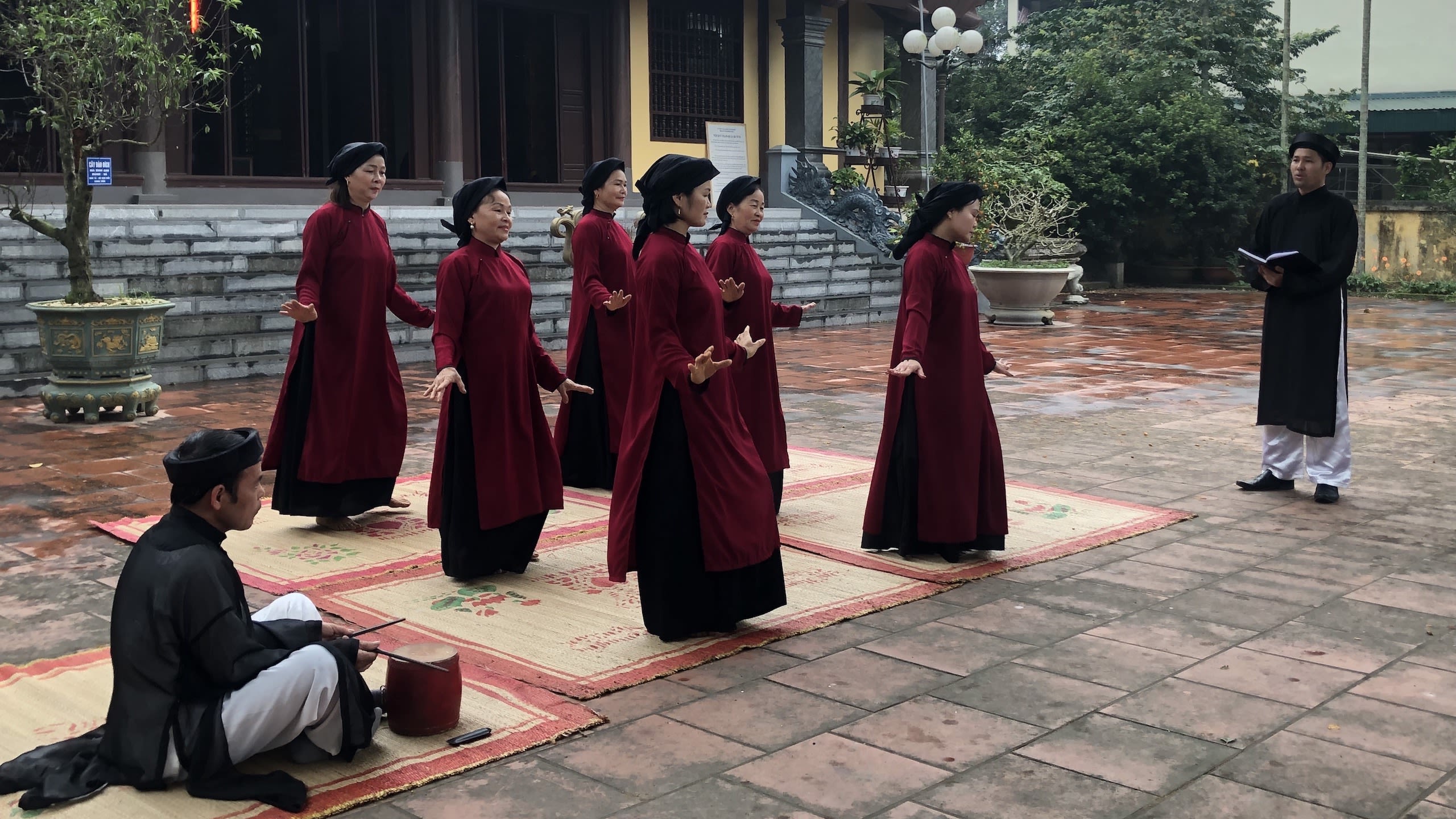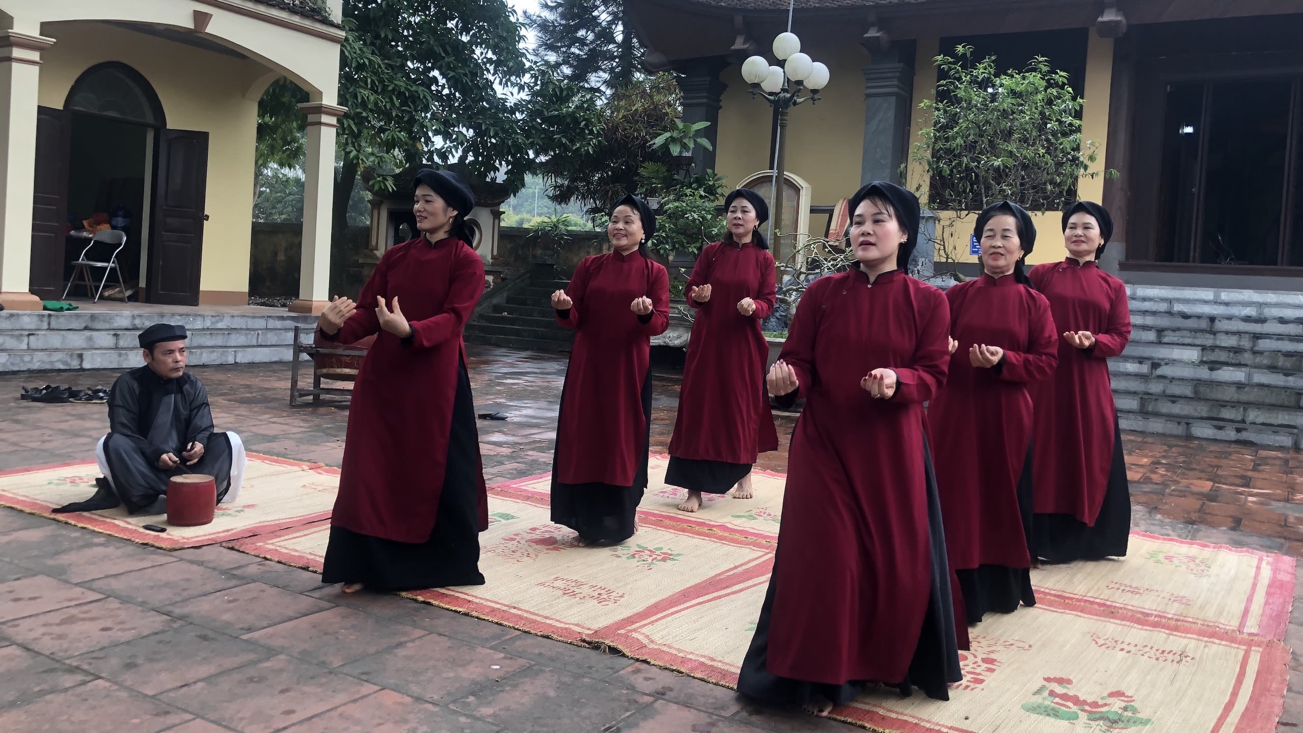 Перед выступлением начальник гильдии «соан», заслуженный мастер Буй Тхи Киеу Нга, как правило, входит в храм воскурить благовония и попросить у бога-покровителя деревни разрешения на выступление. Выступления проходят прямо во дворе храма, но циновки не разрешается укладывать прямо перед дверью храма.