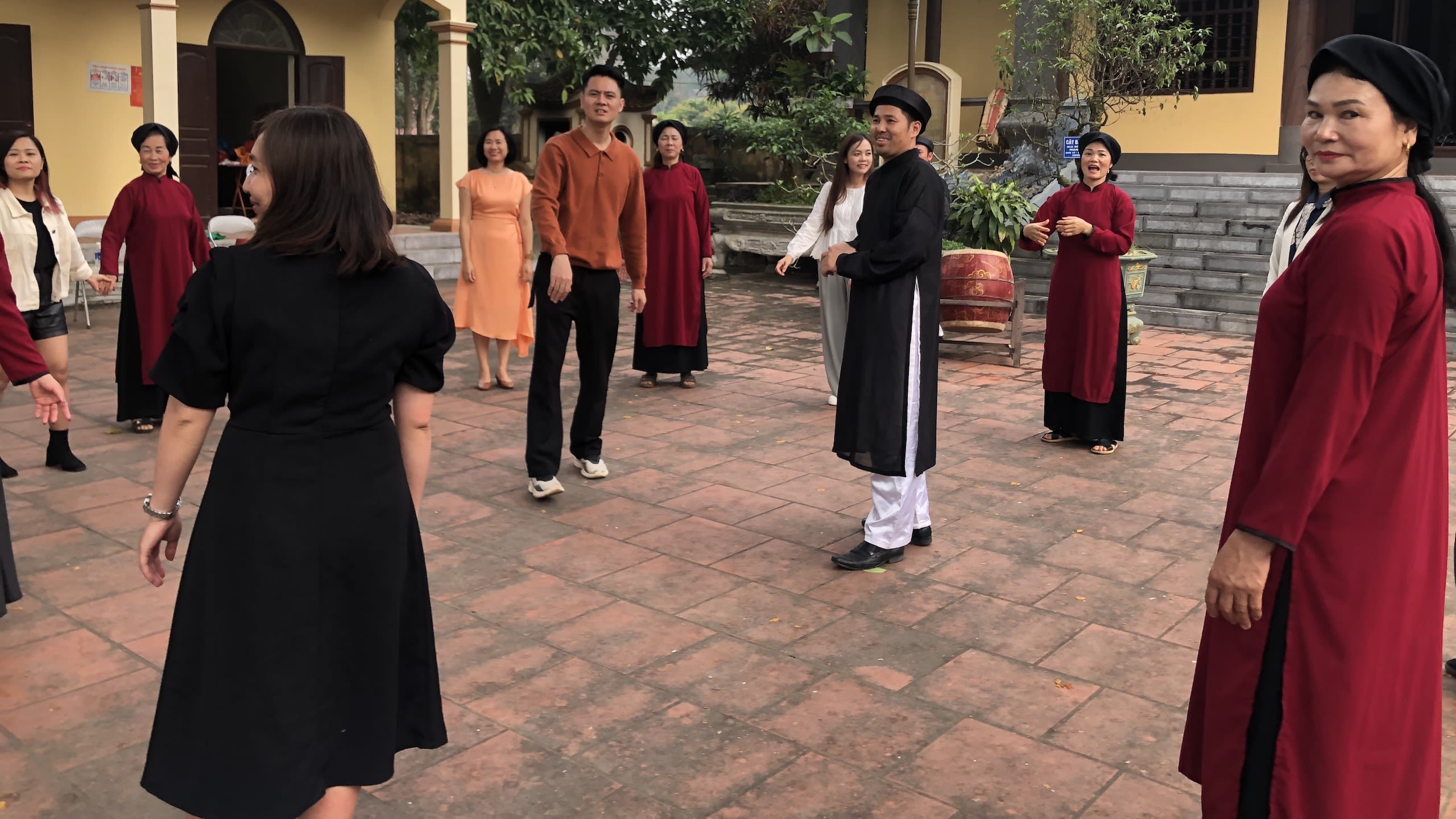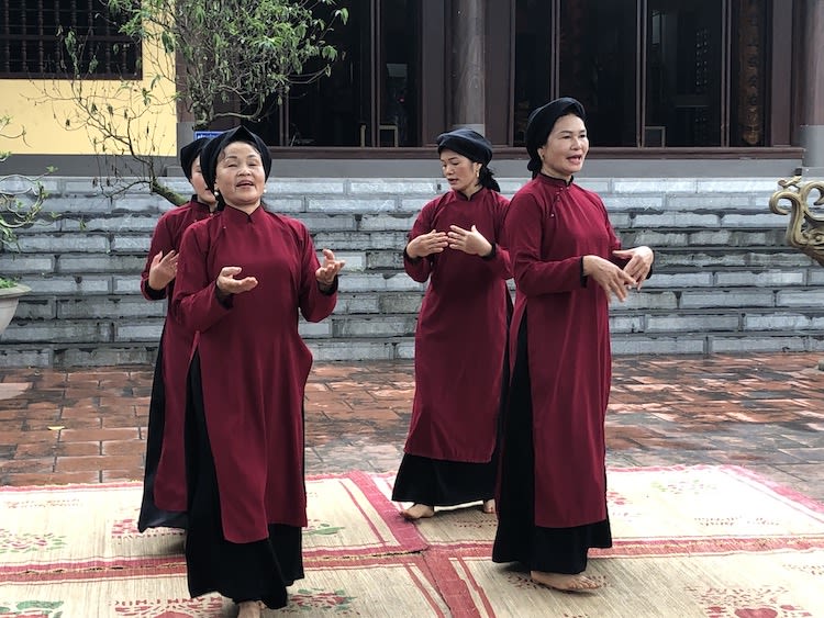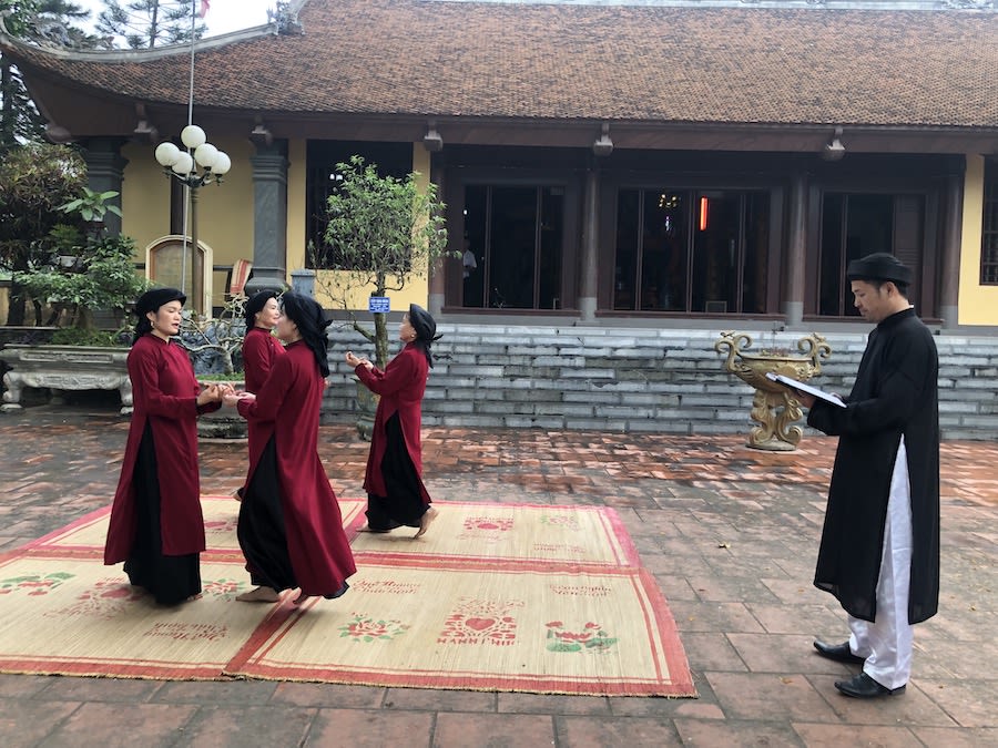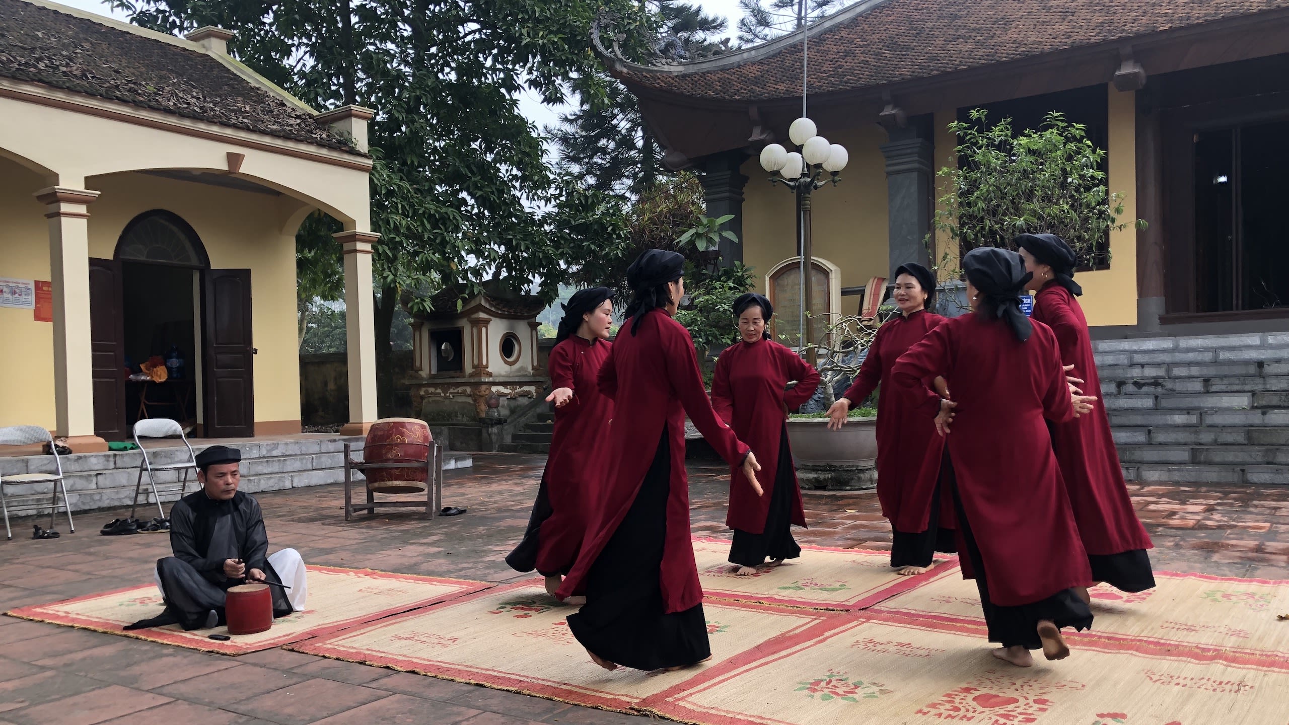 Перед выступлением начальник гильдии «соан», заслуженный мастер Буй Тхи Киеу Нга, как правило, входит в храм воскурить благовония и попросить у бога-покровителя деревни разрешения на выступление. Выступления проходят прямо во дворе храма, но циновки не разрешается укладывать прямо перед дверью храма.
