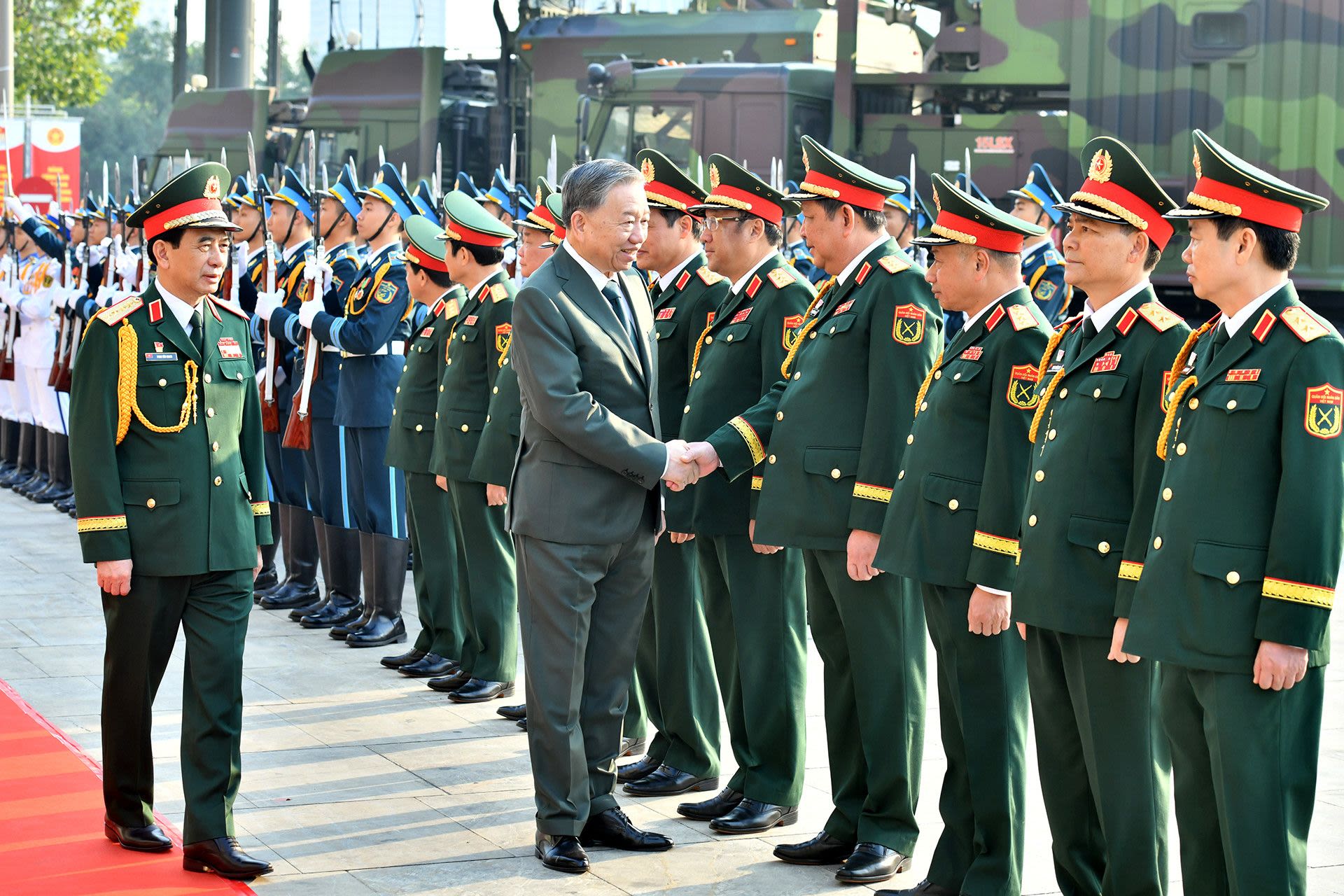 Генеральный секретарь ЦК КПВ То Лам и руководители Центрального военного комитета, Министерства обороны на церемонии, посвященной 80-летию основания Вьетнамской народной армии.