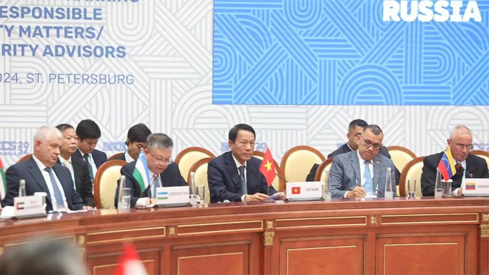 Министр общественной безопасности Вьетнама Лыонг Там Куанг на конференции высокопоставленных руководителей стран БРИКС и стран Южного полушария, отвечающих за безопасность, которая прошла в Санкт-Петербурге, 11 сентября 2024 года. Фото: газета «Нянзан»