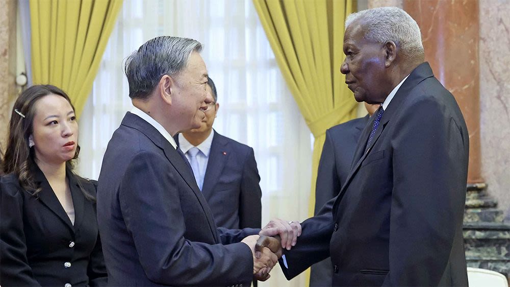 Президент То Лам принимает Председателя Национальной ассамблеи народной власти Кубы Эстебана Ласо Эрнандеса, принявшего участие в церемонии прощания с Генеральным секретарем ЦК КПВ Нгуен Фу Чонгом, 24 июля 2024 г. Фото: ВИА