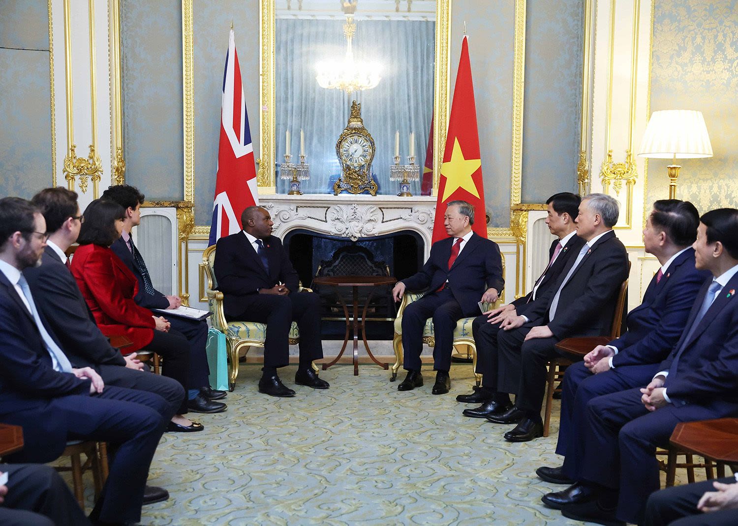 Генеральный секретарь ЦК КПВ То Лам подчеркнул, что Вьетнам придаёт большое значение отношениям традиционной дружбы и стратегического партнёрства с Великобританией, основанным на взаимном уважении, равноправии и ориентации на будущее. Вьетнам готов к тесному взаимодействию с Соединённым Королевством для вывода отношений на новый уровень по ключевым направлениям, включая политику и дипломатию, оборону и безопасность, науку и технологии, цифровую трансформацию, финансы и банковское дело, образование и подготовку кадров, защиту окружающей среды и борьбу с изменением климата, а также культуру и народные обмены.