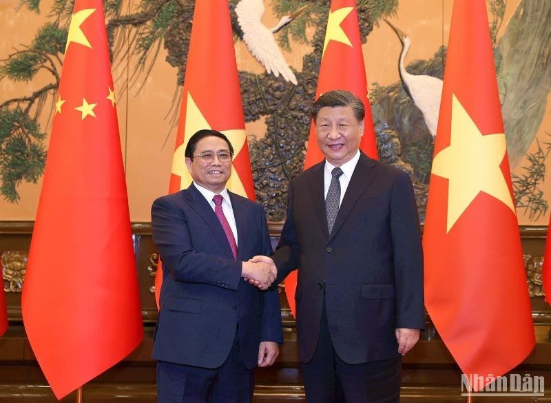На встрече с Генеральным секретарем Центрального комитета (ЦК) Коммунистической партии Китая (КПК), Председателем Китая Си Цзиньпином Премьер-министр Фам Минь Тьинь подчеркнул, что развитие стабильных, здоровых, устойчивых и долгосрочных отношений с Китаем является главным приоритетом внешнеполитического курса Вьетнама. Генеральный секретарь ЦК КПК, Председатель Китая Си Цзиньпин подтвердил, что Китай считает Вьетнам приоритетным направлением соседней дипломатии и готов содействовать развитию отношений между двумя Партиями в более углубленном и практическом направлении.
