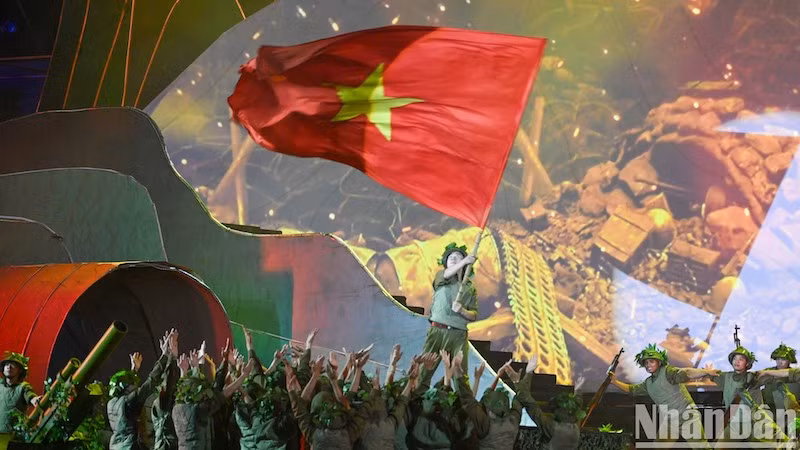 Художественные выступления тщательно подготовлены, посвящены моментам, когда жители доставляли на фронт продовольствие на велосипедах, и бойцы тащили пушки на поле боя, а также битве при Химламе, с которой началась операция Дьенбьенфу. Программа завершилась высотным фейерверком.