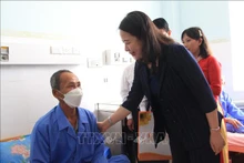 Вице-президент Во Тхи Ань Суан навещает пациента в онкологической больнице провинции Кханьхоа. Фото: ВИА