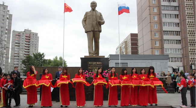 Памятник Президенту Хо Ши Мину, под которым высечена его известная фраза на русском языке «Нет ничего дороже независимости и свободы», был сооружен в Москве в 80-х годах прошлого века. Бульвар Хо Ши Мина и памятник Хо Ши Мину существуют и в родном городе Ленина – Ульяновске.