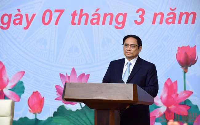 Премьер-министр Фам Минь Тьинь выступает с речью. Фото: Чан Хай