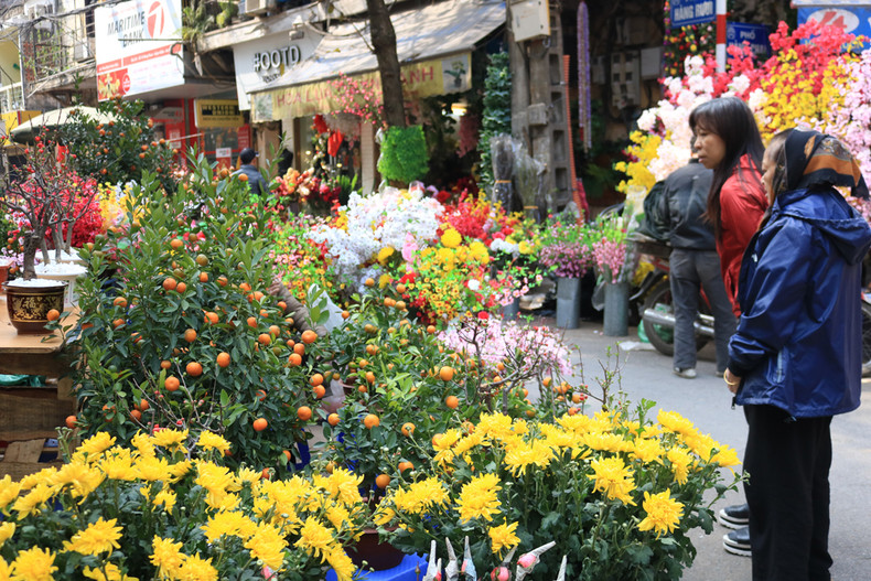 Люди ходят на базары, чтобы купить продукты для приготовления новогодних блюд, фрукты для подноса с пятью видами фруктов, цветы, декоративные растения, предметы для укращения дома. Символические цветы для Тэта – это цветы персика, абрикосовые жельтые цветы, шпажник, георгина, и т. д. В зависимости от каждого региона поднос с пятью видами фруктов имеет разные виды фруктов. Однако поднос обозначает общее желание: благополучие, процветание, полное счастье, ...