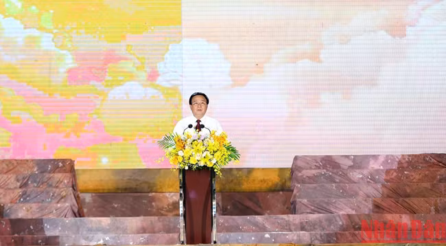 Товарищ Нгуен Суан Тханг выступает на церемонии. Фото: Тхань Дат