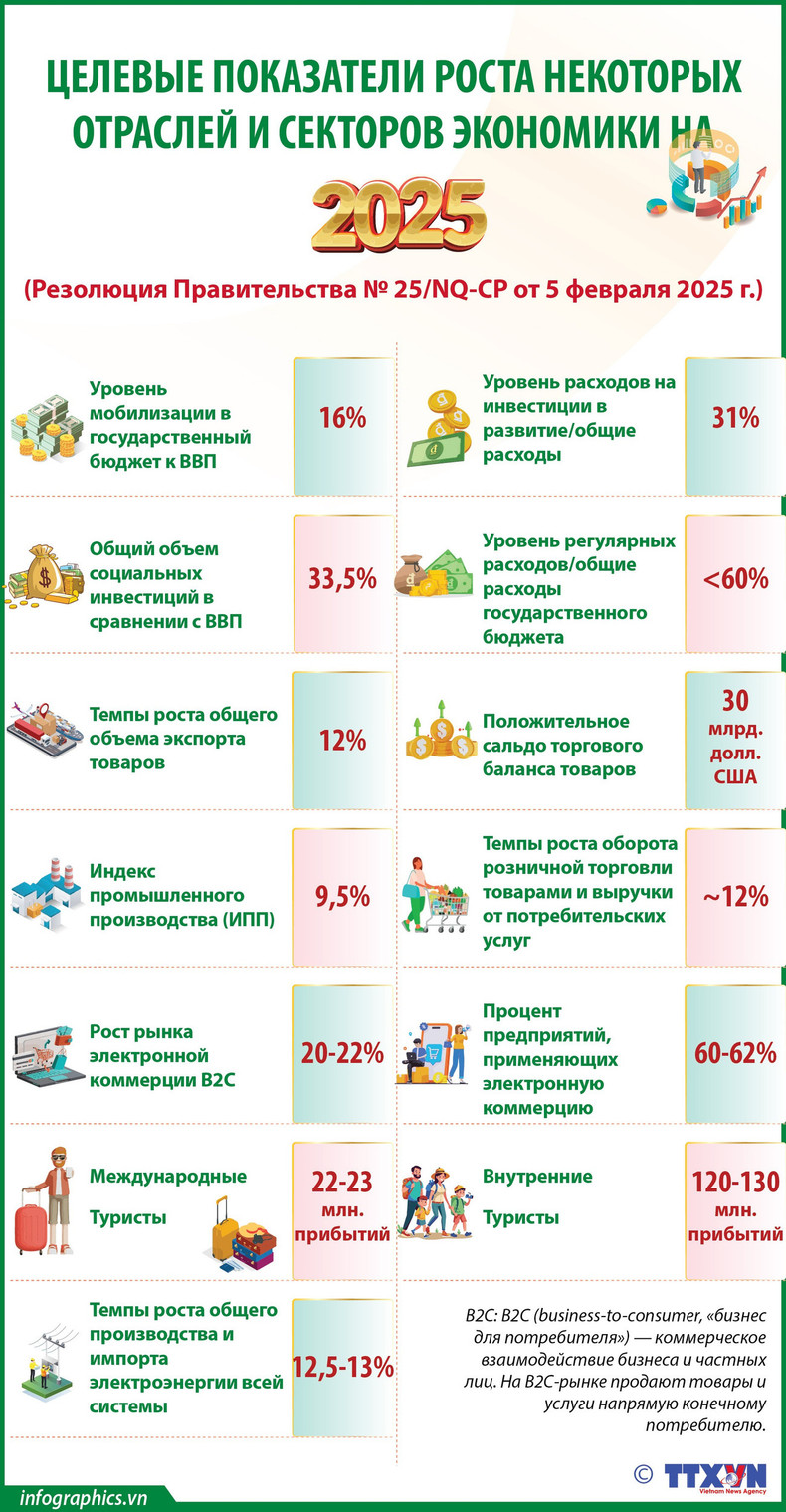 В соответствии с Резолюцией № 25/NQ-CP от 5 февраля 2025 года о целях отраслевого, промышленного и регионального роста, Правительство установило конкретные целевые показатели роста, чтобы обеспечить рост национальной экономики не менее чем на 8% в 2025 году.