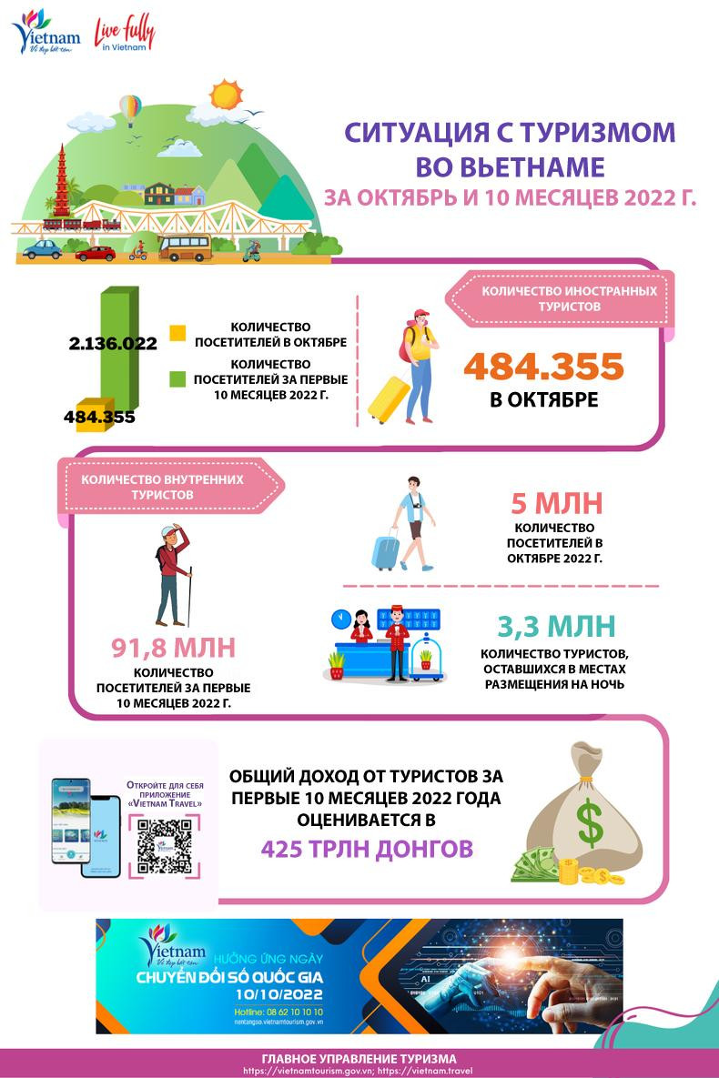 Статистические данные Главного статистического управления и Главного управления туризма показывают, что в октябре количество иностранных туристов, посетивших Вьетнам, продолжало немного увеличиваться, количество внутренних посетителей уменьшилось по сравнению с сентябрем. В целом, туризм сохраняет динамику роста.