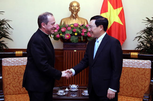 Ранее, принимая первого заместителя секретаря Ватикана по отношениям с государствами А. Камиллери, Вице-премьер, глава МИД Вьетнама Фам Бинь Минь подчеркнул, что вьетнамские власти создавали и создают благоприятные условия для религиозной деятельности. Он предложил, чтобы Святой Престол продолжил заботиться о Вьетнамской католической общине и помогать ей активно участвовать в деле строительства, защиты и развития страны, следовать политике и соблюдать законы государства.