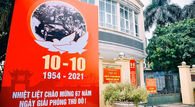 Здания учреждений и подразделений на улице Чантхайтонг (район Каужай, Ханой) украшаются баннерами и лозунгами, посвященными 67-й годовщине со дня освобождения столицы.