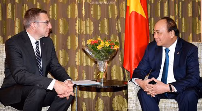 Премьер-министр Нгуен Суан Фук (справа) и бывший Министр иностранных дел Бельгии Стевен Ванакере. Фото: VGP
