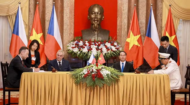 Глава вьетнамского государства Чан Дай Куанг и Президент Чехии Милош Земан выразили удовлетворение положительным развитием в отношениях между Вьетнамом и Чехией в последнее время, договорились расширить сотрудничество в областях, таких как экономика и торговля, оборона и безопасность, культура, образование и подготовка кадров, наука и технологии.
