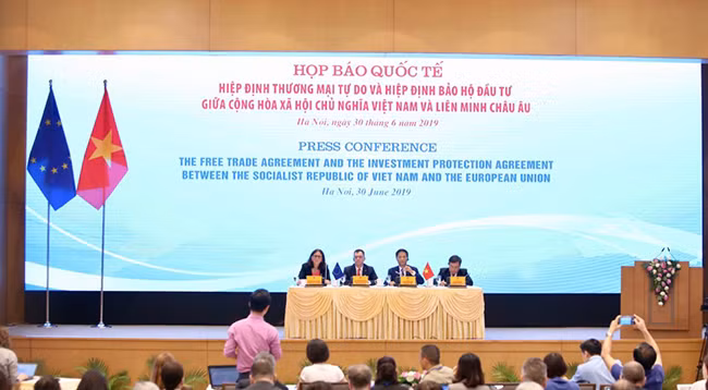 На пресс-конференции, прошедшей после церемонии подписания EVFTA и EVIPA, представители Министерства промышленности и торговли, Министерства планирования и инвестиций Вьетнама и представители ЕС ответили на вопросы, связанные с выгодой, которую эти соглашения принесут обеим сторонам, с преимуществами и недостатками, а также с мерами, которые предприятия должны продвигать в целях воспользоваться торгово-инвестиционными возможностями после вступления соглашений в силу.