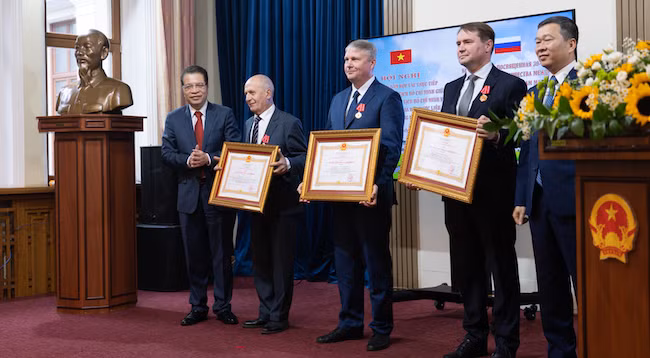 Вручение орденов труда 3-й степени Президента Вьетнама ВИЛАР и российским частным лицам. Фото: Тхань Тхэ