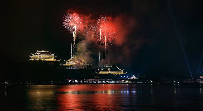 Шоу фейерверков в пагоде Тамтьук. Фото: Туан Дао