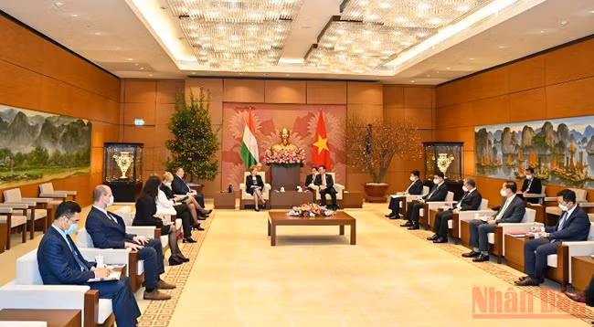 На приеме Председатель НС Выонг Динь Хюэ приветствовал результаты переговоров и круглого стола между Первым заместителем председателя Парламента Венгрии и Постоянным заместителем председателя НС Чан Тхань Маном, высоко оценив содержание обсуждения на круглом столе, что демонстрирует практическое и эффективное сотрудничество между двумя парламентами.