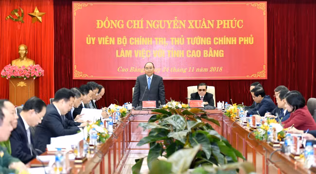 Премьер-министр Нгуен Суан Фук проводит рабочую встречу с руководителями провинции Каобанг. Фото: VGP