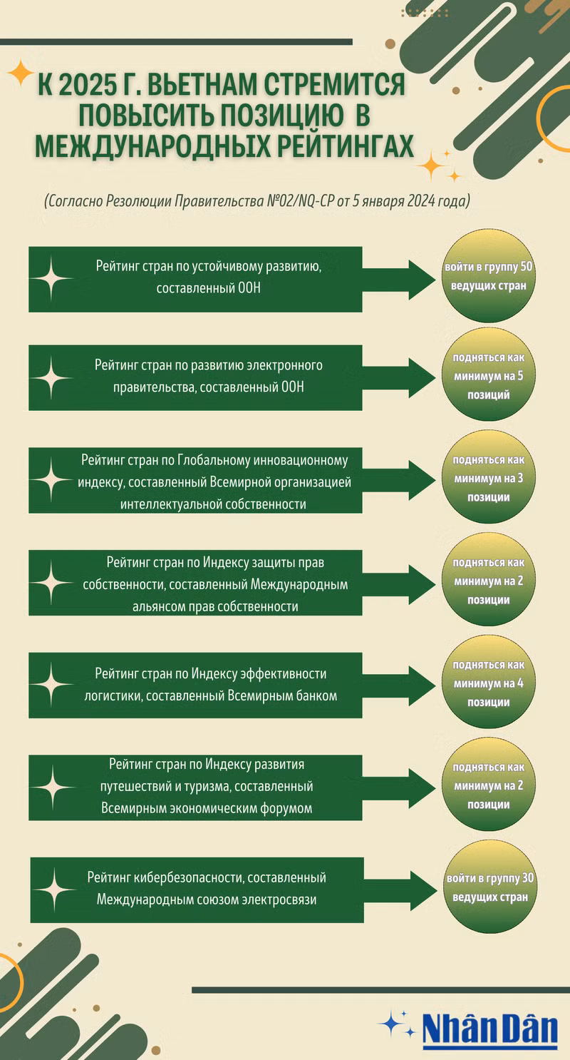 Правительство издало Резолюцию №02/NQ-CP от 5 января 2024 года об основных задачах и решениях по улучшению деловой среды и повышению национальной конкурентоспособности в 2024 году. В Резолюции поставлена общая цель – резкое улучшение качества деловой среды в соответствии с условиями и тенденциями развития для повышения позиции Вьетнама в международных рейтингах.