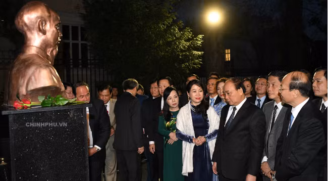 В тот же день Премьер-министр Вьетнама Нгуен Суан Фук с супругой присутствовал на церемонии открытия памятника Президенту Хо Ши Мину в Посольстве Вьетнама в Австрии.
