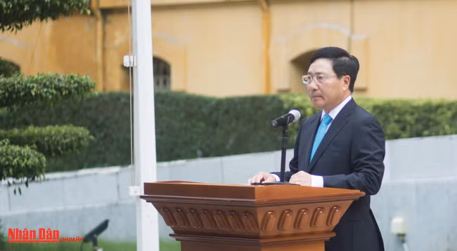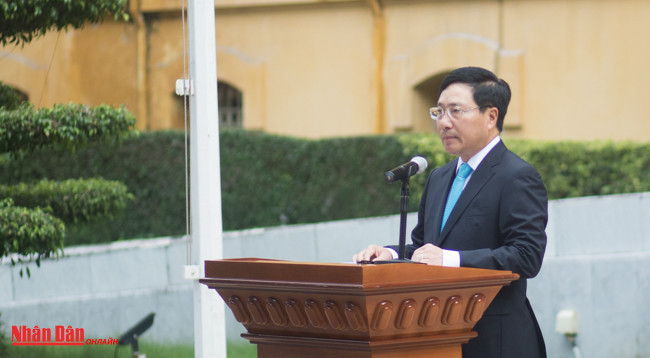 Вице-премьер, Министр иностранных дел Вьетнама Фам Бинь Минь выступает на церемонии. Фото: Тхань Тхе
