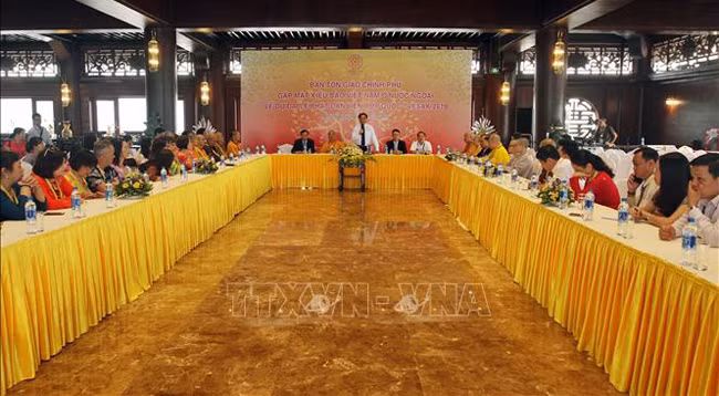 13 мая Заведующий Отделом Правительства Вьетнама по религиозным вопросам Ву Тьен Тханг принял делегацию южнокорейских буддистов и провел встречу с вьетнамцами, проживающими за рубежом, которые прибыли во Вьетнам для участия в Великом буддийском празднике ООН – Весак 2019.