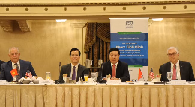 Вице-премьер, глава МИД Фам Бинь Минь на беседе с американскими предприятиями. Фото: VNA