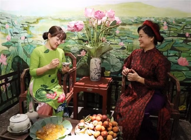 Кроме того, Оргкомитет также пригласил мастеров чаепития Нгуен Као Шона и Нгуен Тхиен Хунга представить искусство чаепития и общаться с посетителями на тему о вьетнамской культуре чаепития, организовал исполнение каллиграфии, традиционной музыки и др.