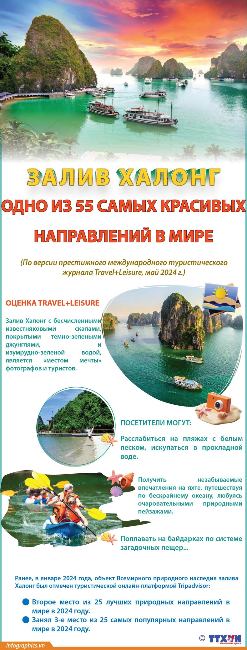 По данным Travel+Leisure, залив Халонг с бесчисленными известняковыми скалами, покрытыми темно-зелеными джунглями, и изумрудно-зеленой водой, является «местом мечты» фотографов и туристов.